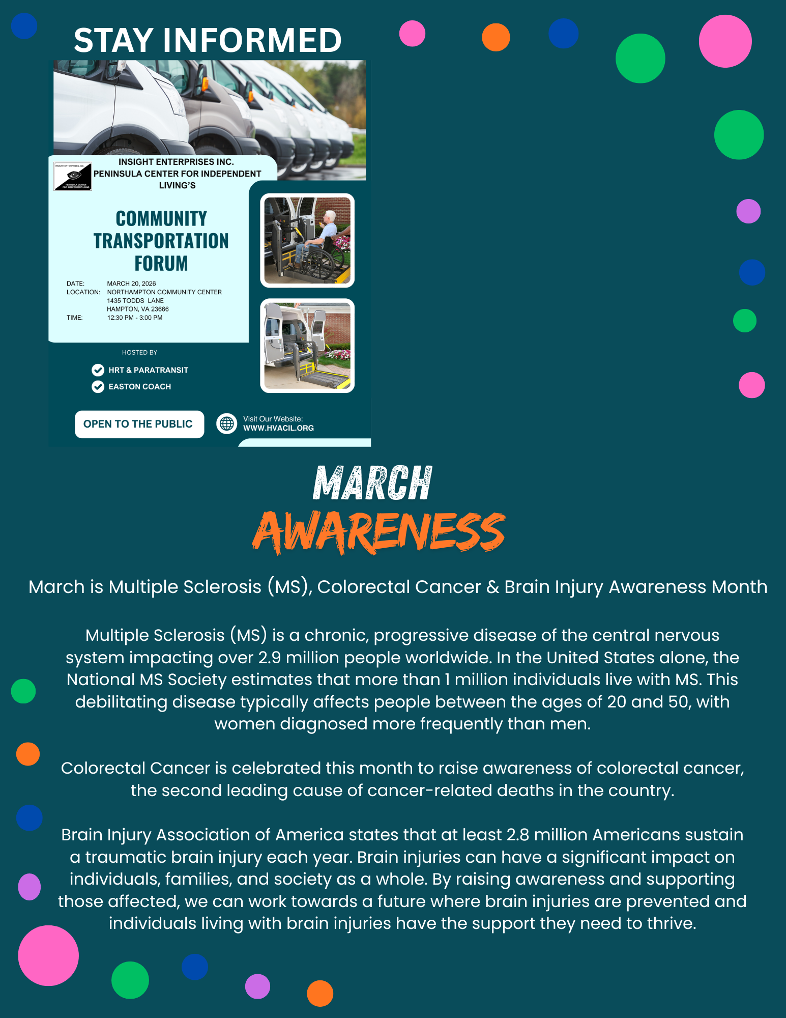 The forum will be hosted by Hampton Roads Transit (HRT) and Easton Coach / Paratransit, who will share information about public transportation and paratransit services for individuals with disabilities and the community.